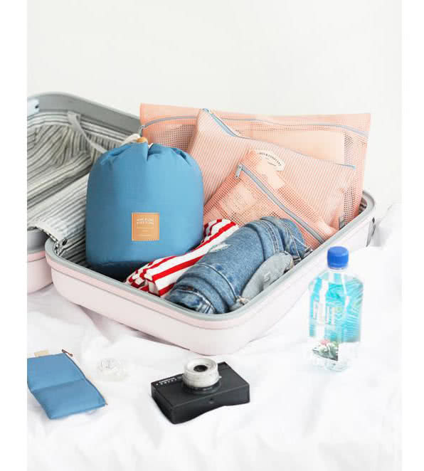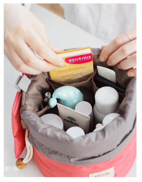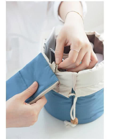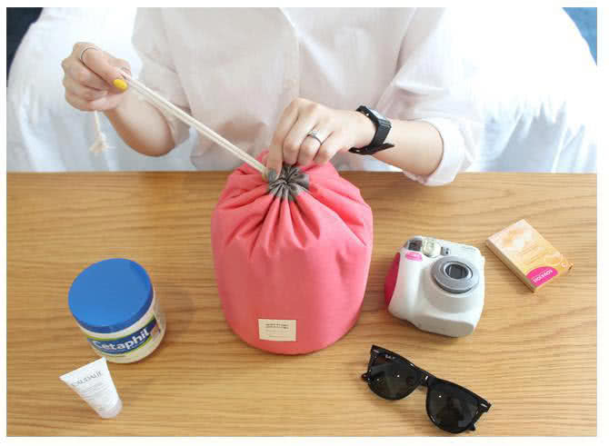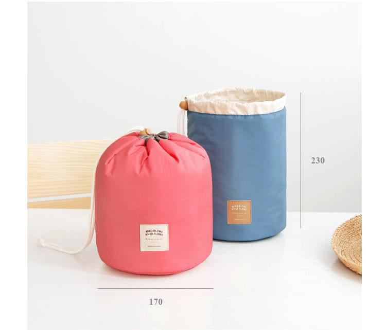 圓筒狀設計美觀又可愛,容量超級大,內層分隔設計分類好方便,圓柱束口袋設計,包口一拉緊就搞定了!一般上街使用或出國旅行都適合!大收納袋、小化妝包、PVC收納袋一套三件,可依照物品體積大小整理放置,讓你的物品收納得井井有條。